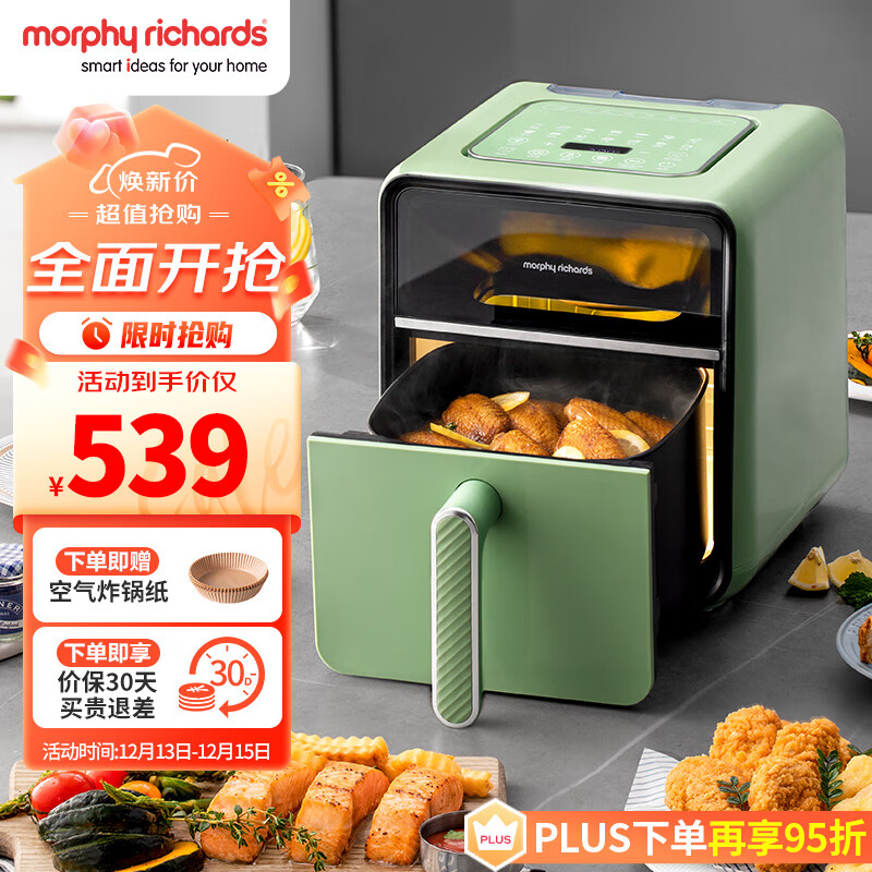 摩飞电器(Morphyrichards)空气炸锅 家用4L可视炉灯蒸汽嫩烤一体空气炸烤箱 多功能炸薯条鸡翅机 MR8101薄荷绿价格:539.00元!