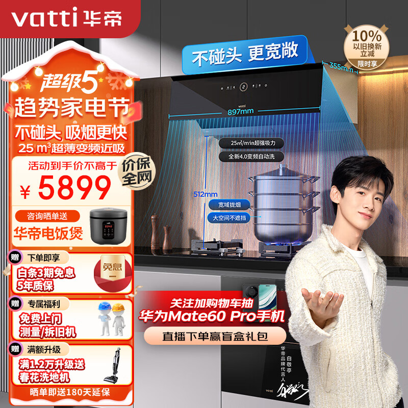华帝(VATTI)抽油烟机家用变频大吸力多件套装25风量吸油烟机灶具消毒柜套装 A2+72B+13040(天然气)价格:5899.00元!