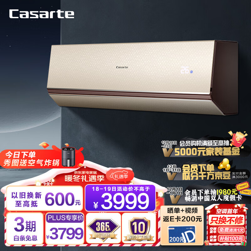 卡萨帝(Casarte)1.5匹 天悦 壁挂式空调挂机新一级变频 紫外线除菌 高端京东小家智能 CAS356ABA(81)U1以旧换新价格:3999.00元!