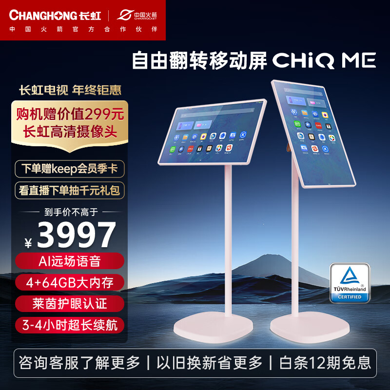 长虹CHiQ ME闺蜜机 随心移动自在屏 27英寸触控屏幕无线续航升降旋转莱茵低蓝光认证 桃yao粉价格:3997.00元!