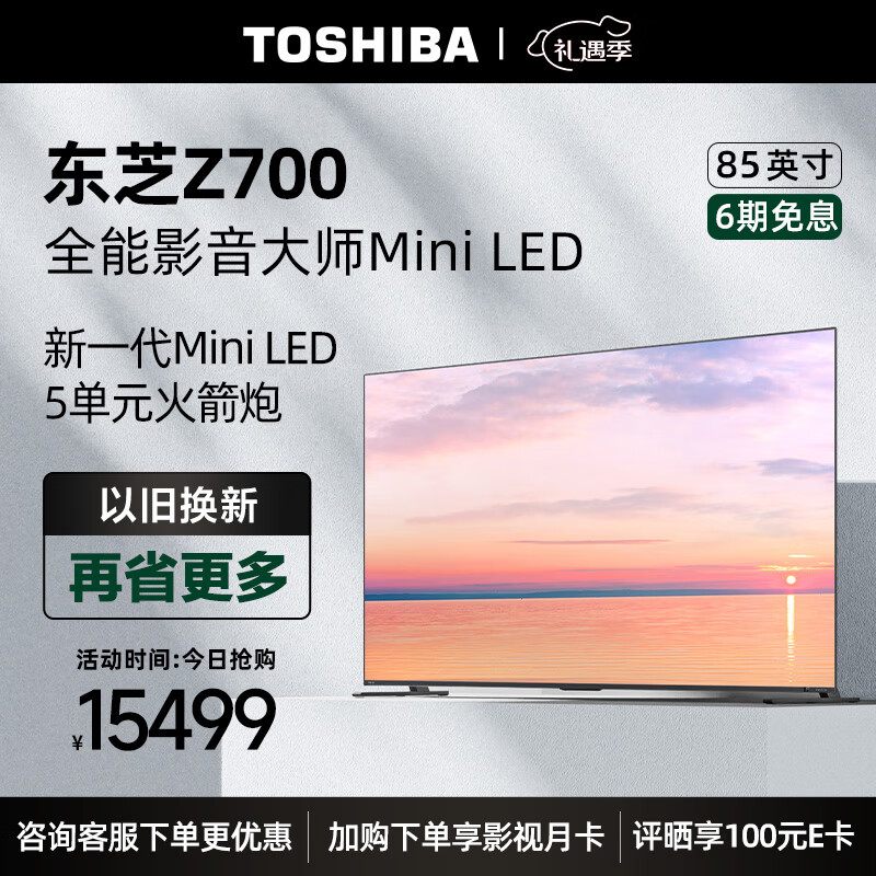 东芝电视85Z700MF 85英寸高端Mini LED 4K144Hz高刷屏65w火箭炮音响 客厅液晶平板游戏电视机 以旧换新价格:15499.00元!