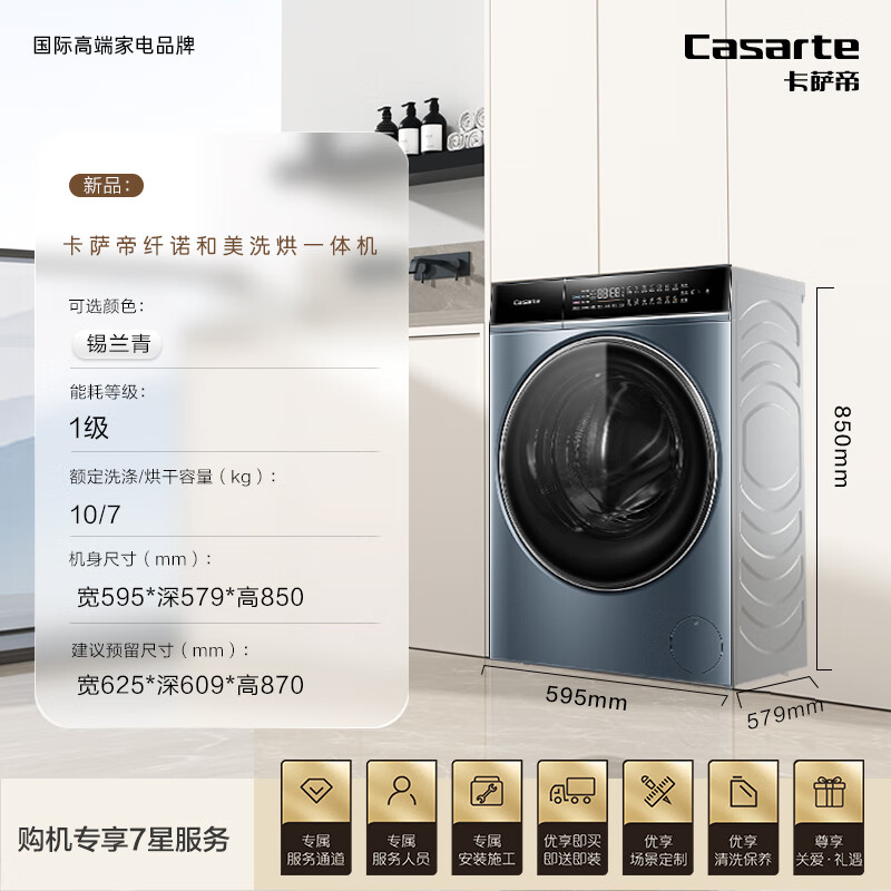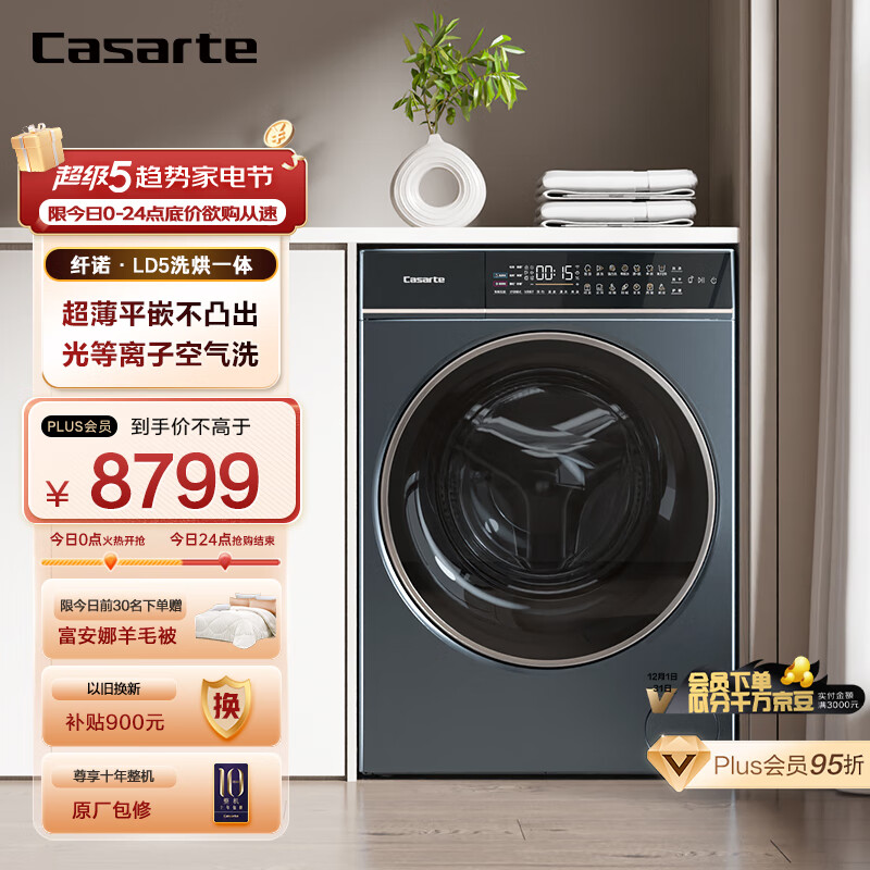 卡萨帝(Casarte)滚筒洗衣机全自动 10公斤洗烘一体机 直驱变频 超薄大筒径 纯平嵌入光等离子 纤诺和美HD10LD5ELU1价格:8799.00元!