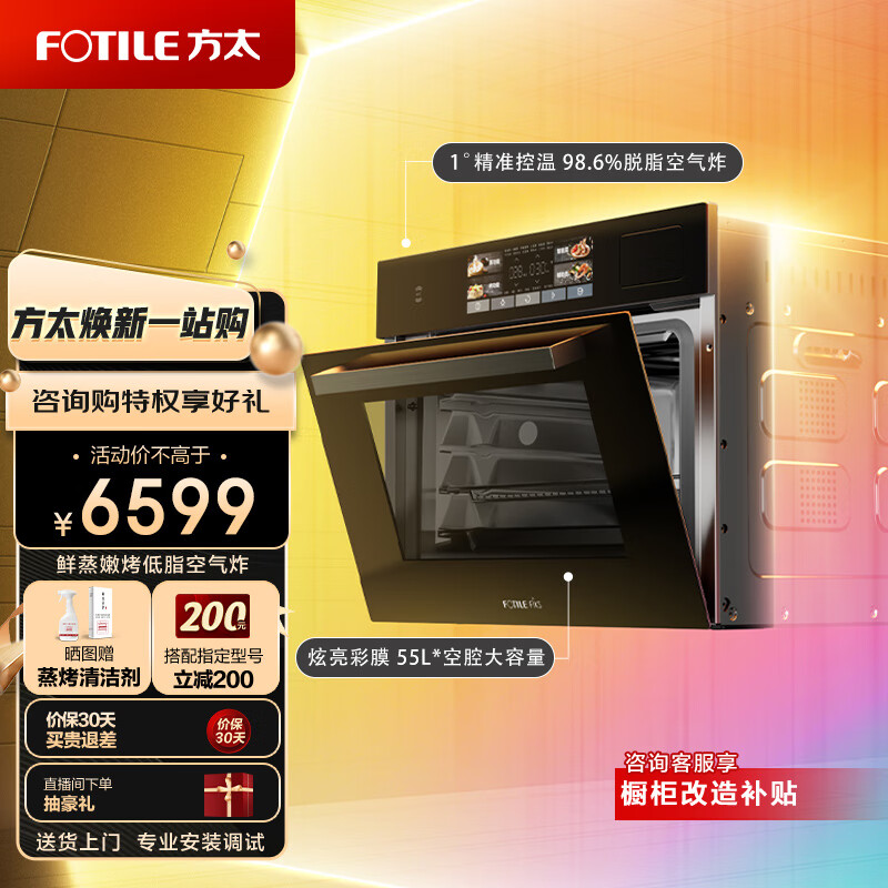 方太蒸烤箱一体机嵌入式家用烘焙多功能 WiFi&NFC互联 智能彩屏蒸箱烤箱空气炸一体机3合一ZK-ES1.i价格:6599.00元!