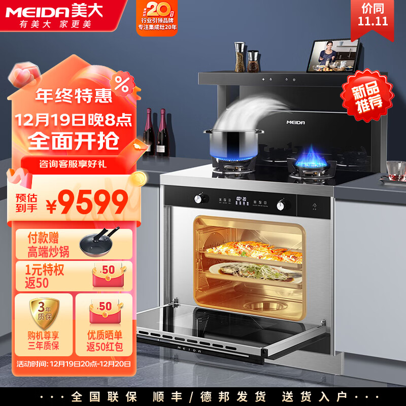 美大(MEIDA)蒸烤一体集成灶X60-ZK 变频猛火大吸力 油烟机燃气灶一体灶 钢化玻璃 家用 天然气价格:10999.00元!