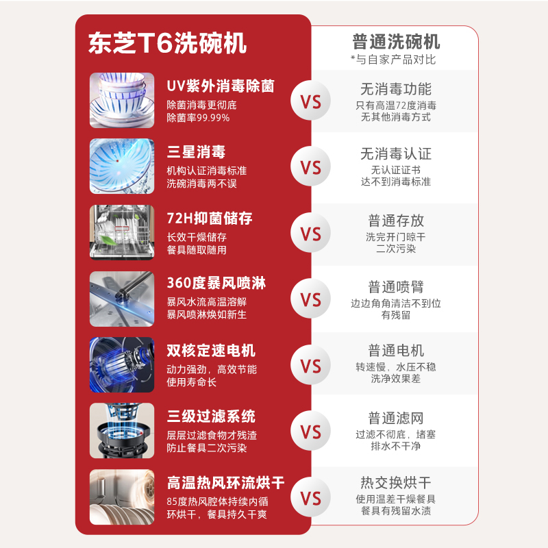 东芝(TOSHIBA)洗碗机嵌入式家用 10套大容量 全自动 双重热风烘干 UV杀菌净味 DWT6-1021价格:4999.00元!