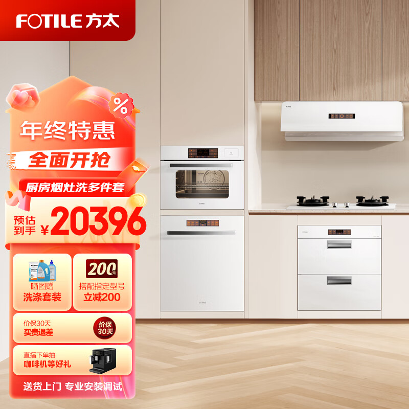方太(FOTILE)烟灶洗烹消五件套 24巡航风量烟灶 15套嵌洗 100L消 蒸烤箱F1-W+THF1-W+B-VF1.i+EF1.I-W+JF1E.i-W价格:20396.00元!