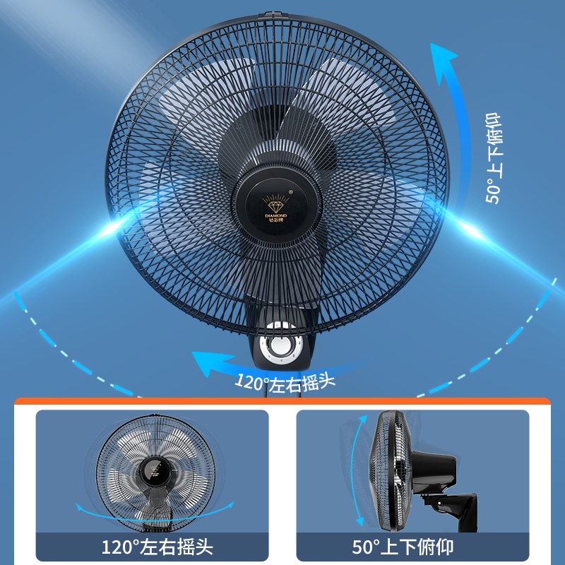 钻石牌(DIAMOND) 壁扇壁挂风扇挂壁式电风扇家用客厅墙壁摇头挂扇挂式工业电扇大风力宿舍餐厅 FB-35-1五叶机械(14寸)价格:119.00元!