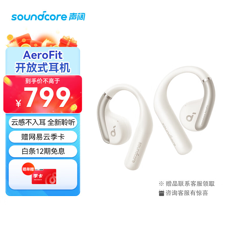 声阔轻跃线云感不入耳蓝牙耳机AeroFit开放舒适佩戴42H续航无线日常办公运动跑步不漏音苹果华为云霜白价格:799.00元!