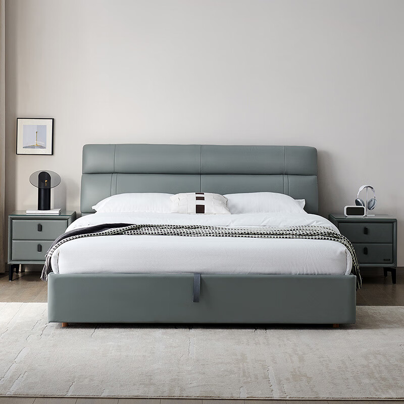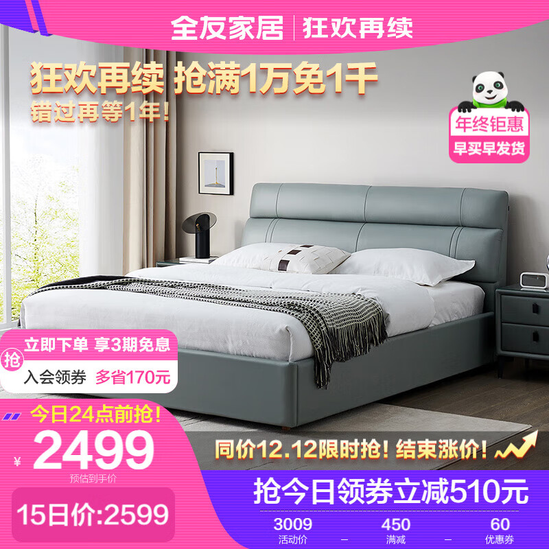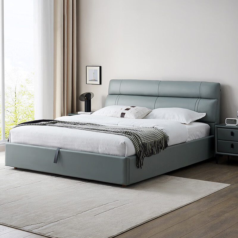 全友家居 进口头层皮双人床现代简约1.8米主卧皮床储物高箱床105251B价格:3009.00元!