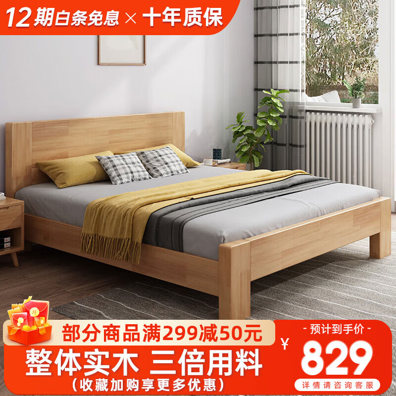 意米之恋橡胶木床实木床 主卧双人床 卧室家具 品质大板 208cm*120cm*80cm价格:879.00元!