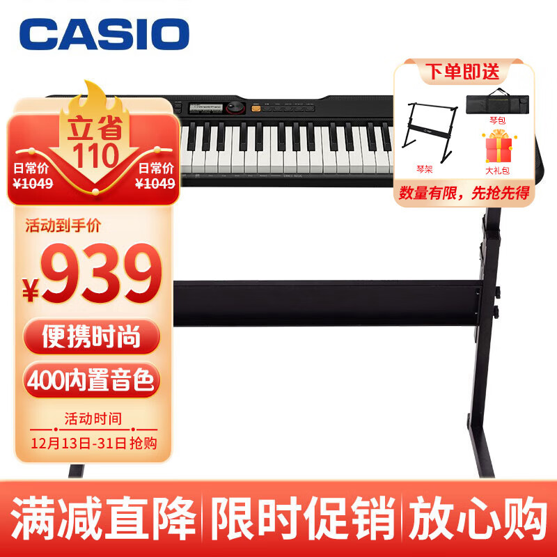 卡西欧(CASIO)电子琴CT-S200BK黑色时尚便携潮玩儿童成人娱乐学习61键电子琴价格:949.00元!