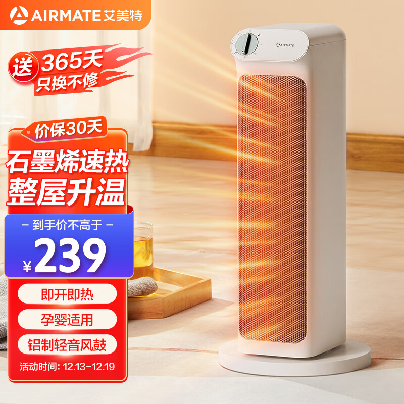 艾美特(AIRMATE)石墨烯暖风机/取暖器/电暖器/电暖气片家用/电热风扇/烤火炉 塔式轻音节能速热暖风机 HP20-K1-3价格:259.00元!