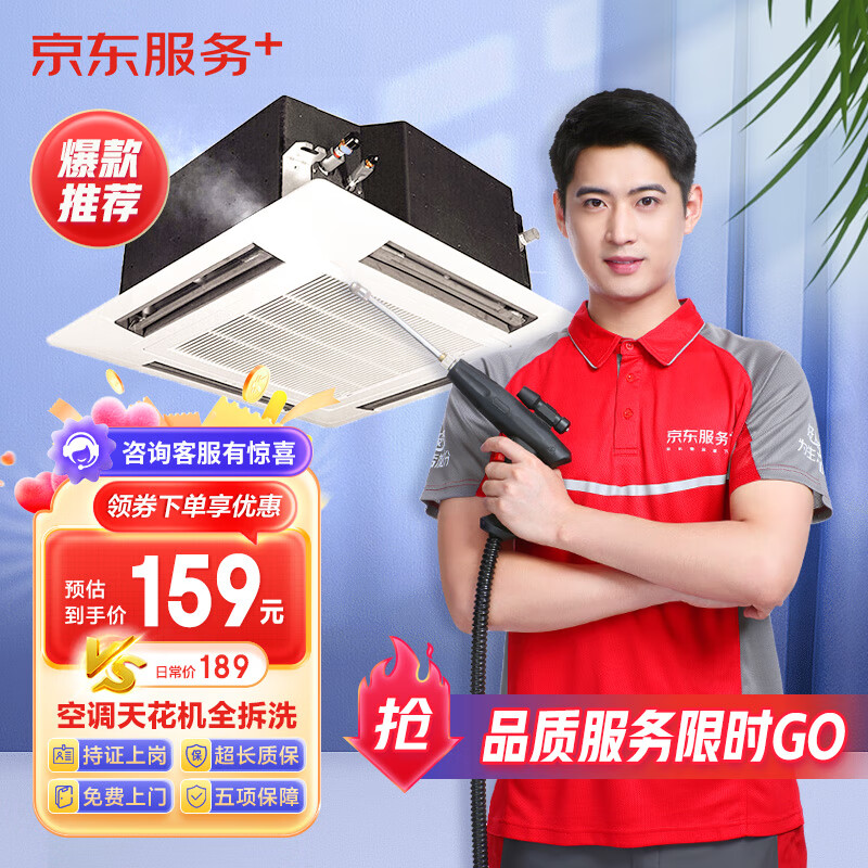 【京东服务+】空调天花机全拆洗 家电清洗 上门服务 家政保洁价格:189.00元!