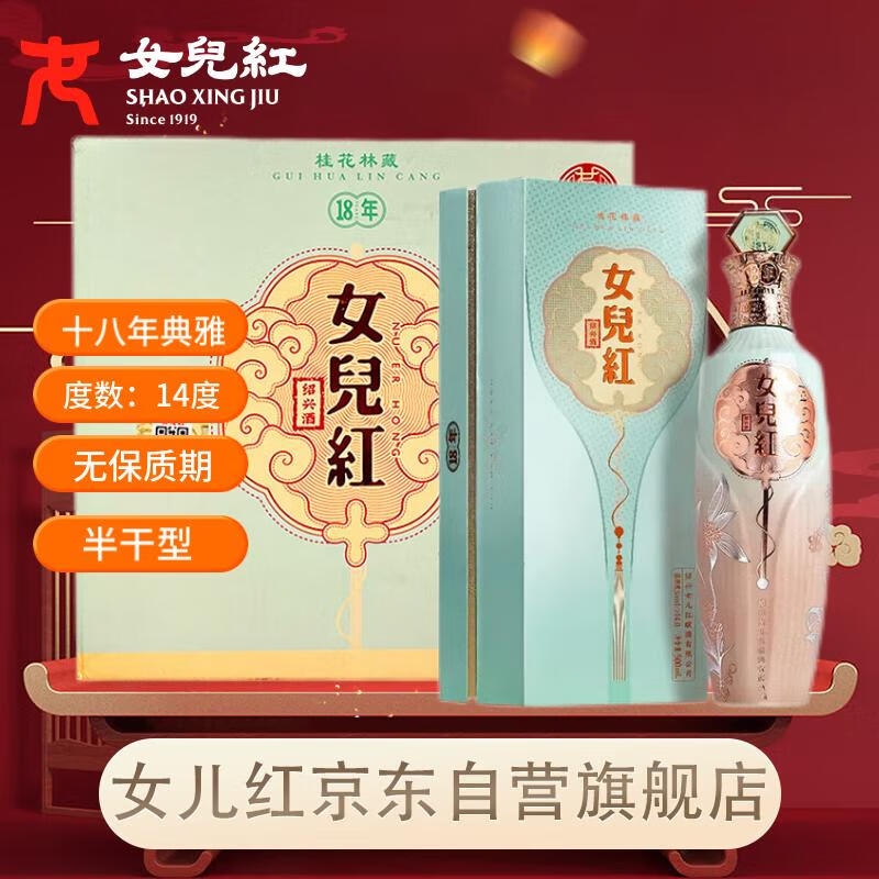 女兒红 桂花林藏十八年 典雅版 半干型 绍兴黄酒 500ml*6瓶 整箱装 礼盒价格:2208.00元!