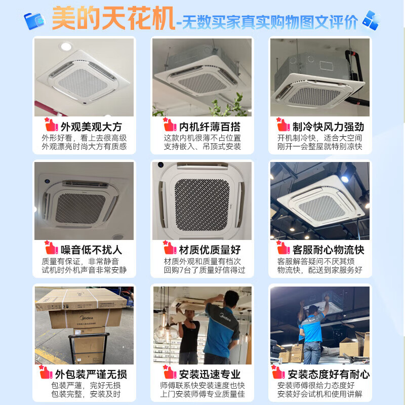 5、买的5匹冷暖天花机,尺寸超级薄,安装颜值很高,出风很大,能耗一级,性价比高。