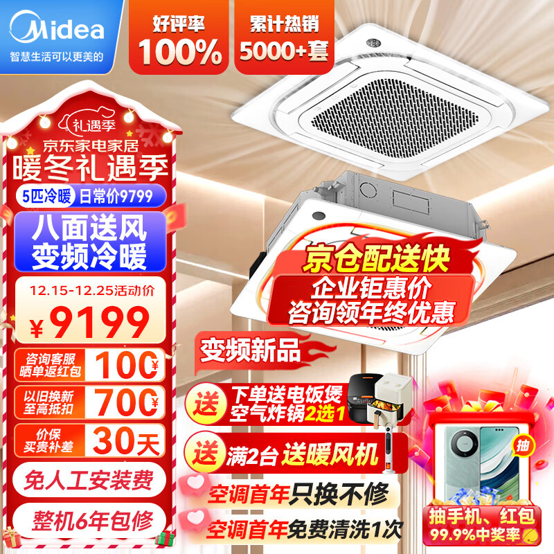 美的(Midea)中央空调一拖一 5匹天花机吸顶空调吊顶空调 变频冷暖新能效380V RFD-120QW/BSDN8Y-D(B3)京仓派送价格:9199.00元!