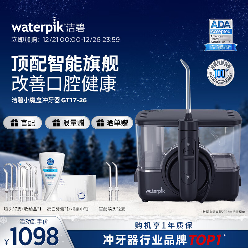 洁碧(Waterpik)冲牙器 无线台式电动洗牙器水牙线洁牙器 家用立式预防牙结石 无线台式小魔盒GT17-26 圣诞礼物价格:1258.00元!