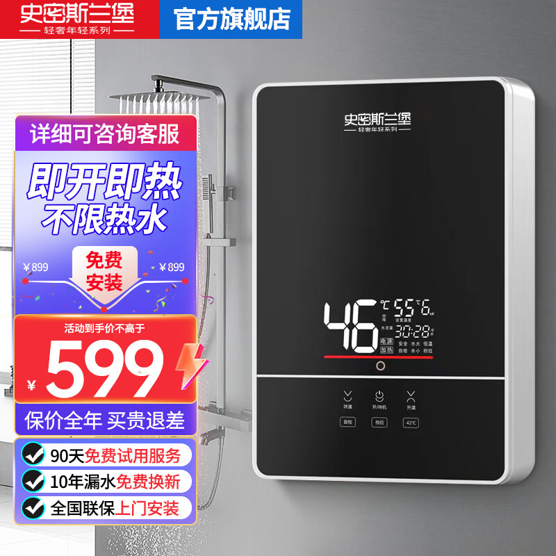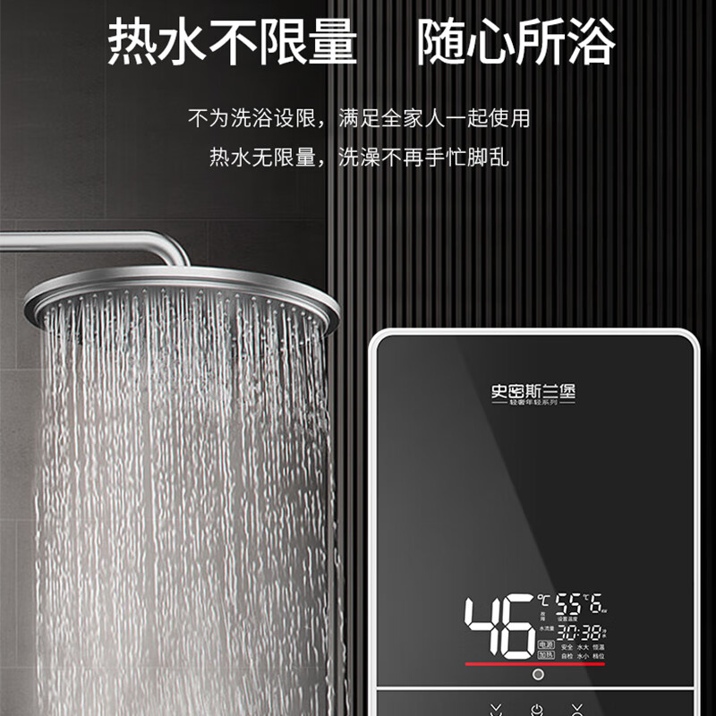 史密斯兰堡即热式电热水器电家用6000W速热洗澡器小型淋浴加热宝即开即热快速加热恒温洗澡机免储水JR-Y6601价格:599.00元!