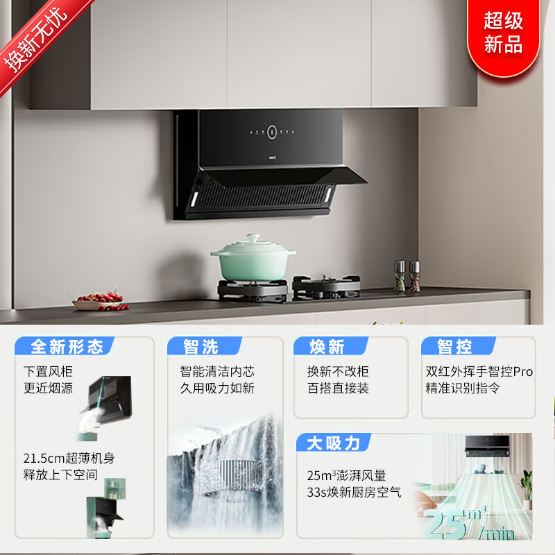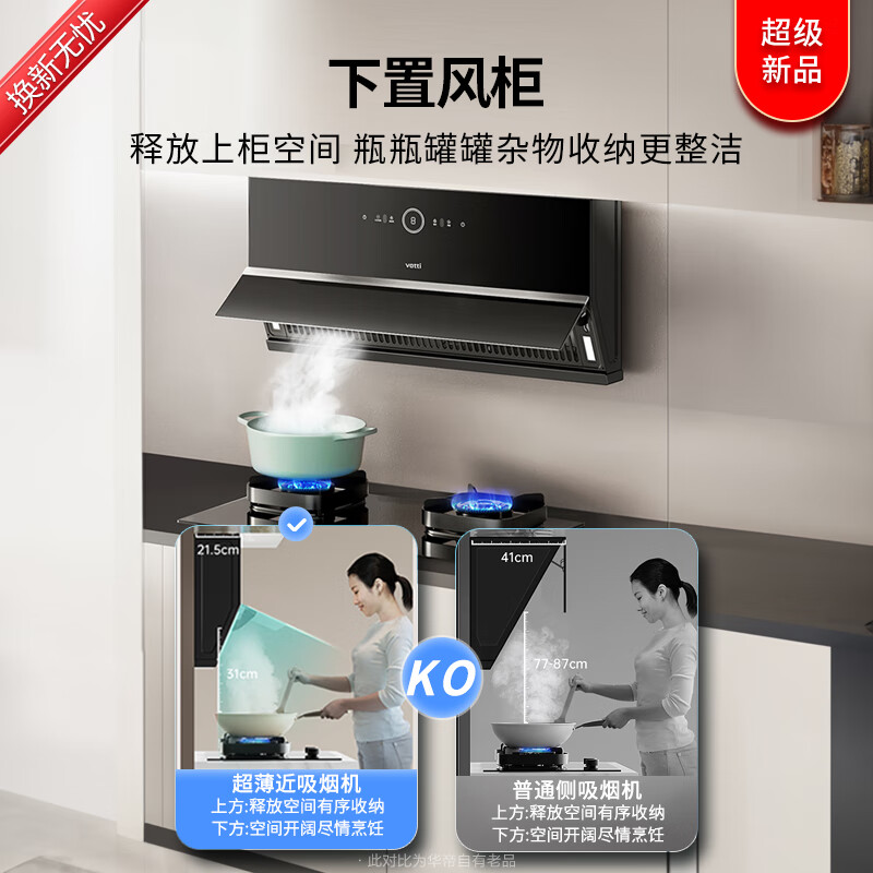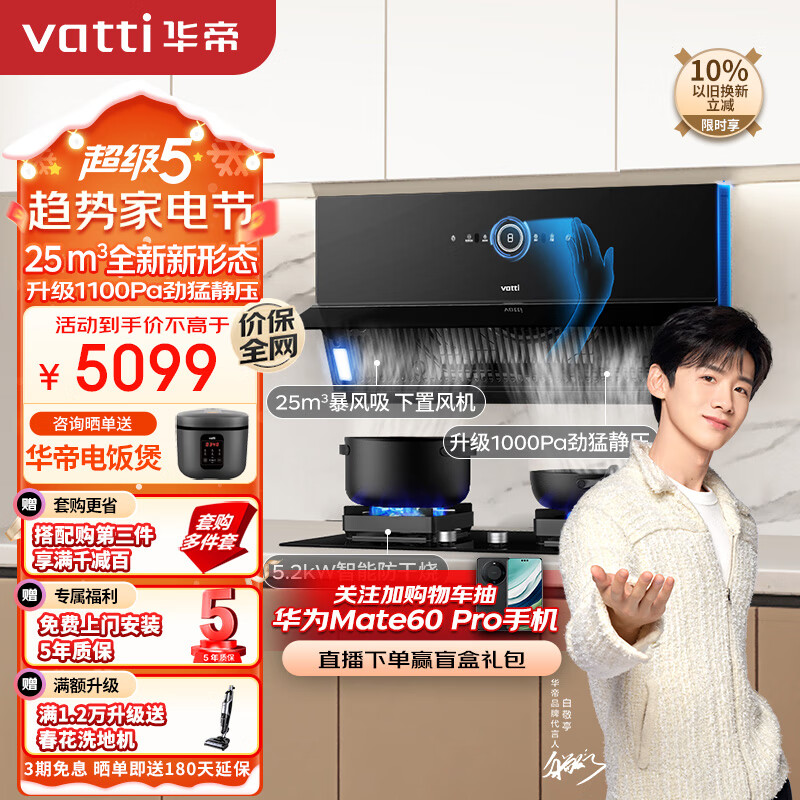 华帝(VATTI)抽油烟机超薄近吸顶侧家用变频大吸力防干烧燃气灶具套装25风量自清洗排油烟机小魔盒C16天然气价格:5099.00元!