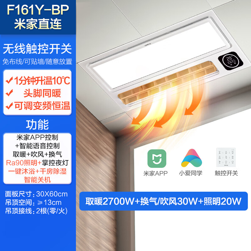 欧普照明(OPPLE)大功率风暖浴霸吊顶米家智控直流变频JDSF161Y-BP价格:1729.00元!