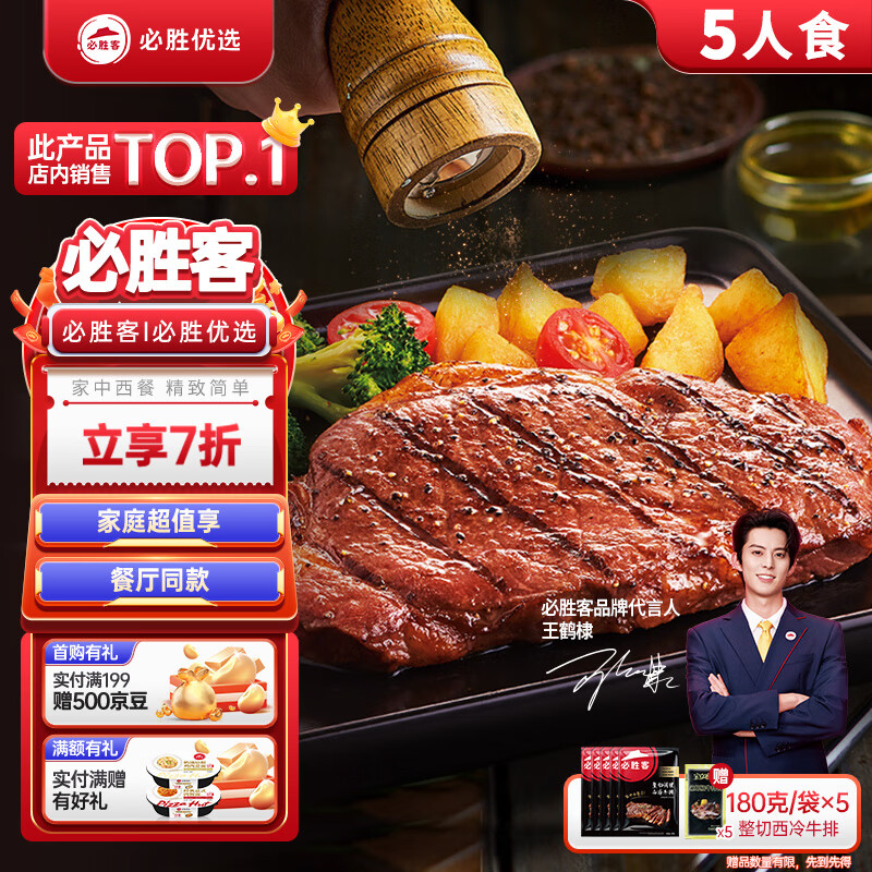 必胜客必胜优选 整切调理西冷牛排 900g 5片装 冷冻 原肉整切牛排价格:192.10元!