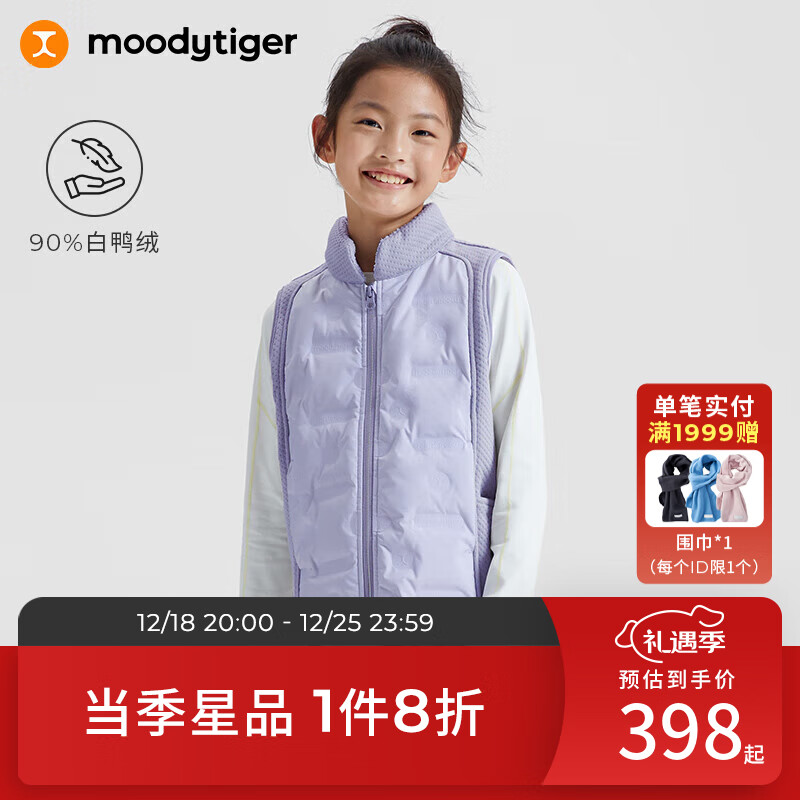 moodytiger儿童羽绒马甲23年秋冬季轻薄款男女童中性外穿羽绒背心价格:498.00元!