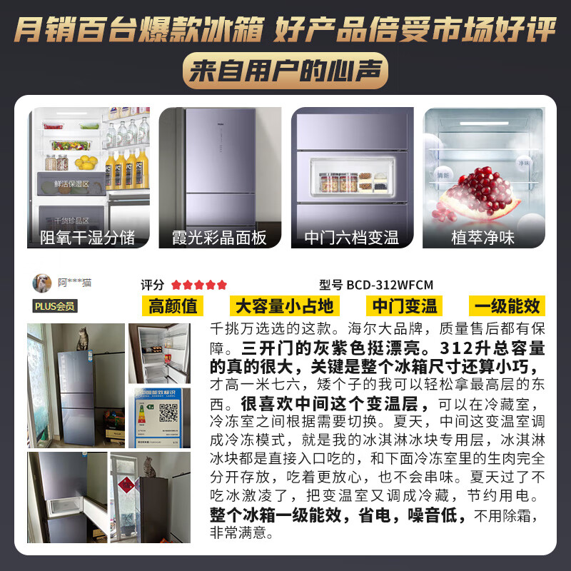 图文对比海尔BCD-312WFCM真实使用评测?了解一星期经验分享?