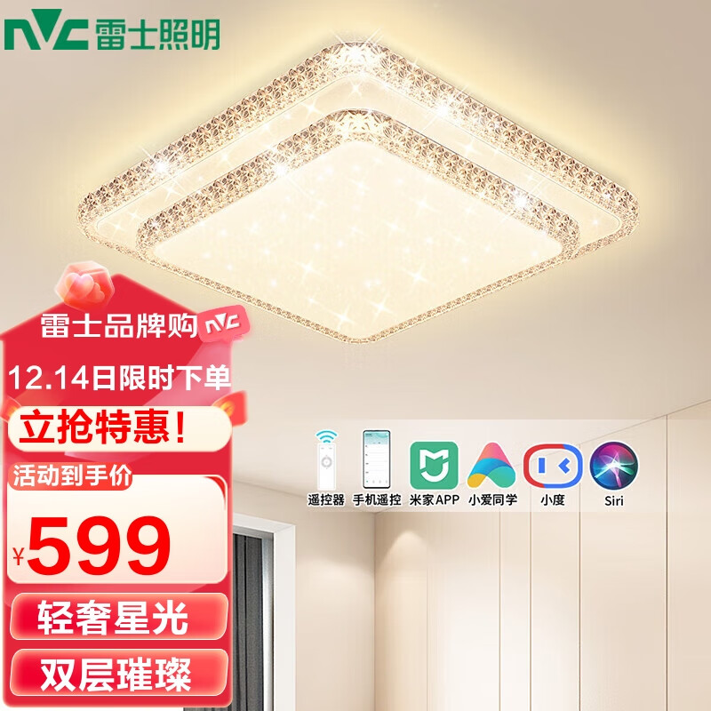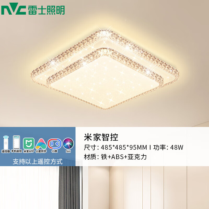 雷士(NVC)LED吸顶灯 现代简约卧室书房餐厅灯具轻奢米家AI智控RA95方形灯饰价格:599.00元!