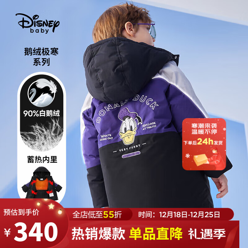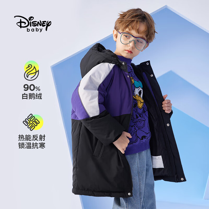 迪士尼 Disney 童装儿童男童羽绒服白鹅绒连帽外套棉服保暖中长款宝宝开衫外套 2022冬 DB241AA05 撞色 130价格:699.90元!