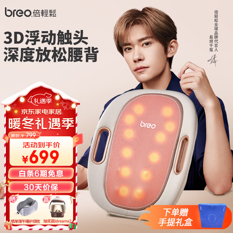 倍轻松(breo) 腰部按摩器颈椎腿部按摩仪枕头送老师爸妈长辈睡眠仪圣诞生日礼物送朋友老婆送礼【升级无线款】 金色 易烊千玺代言价格:779.00元!