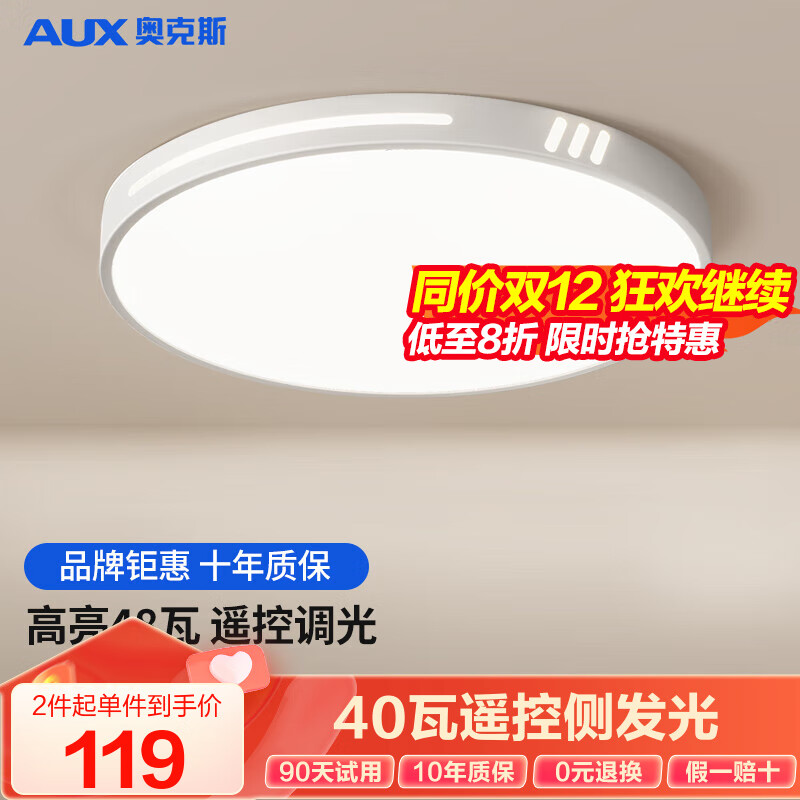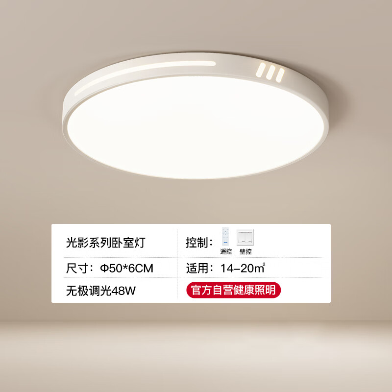 奥克斯(AUX) 卧室灯具LED客厅灯吸顶灯餐厅灯现代简约阳台灯健康照明 光影-48瓦无极调光50CM适20㎡价格:132.00元!