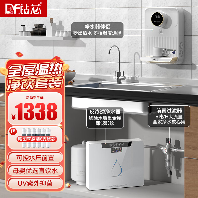 钻芯 净水器家用直饮RO反渗透厨下式纯水机自来水过滤器壁挂式净水机价格:1338.00元!