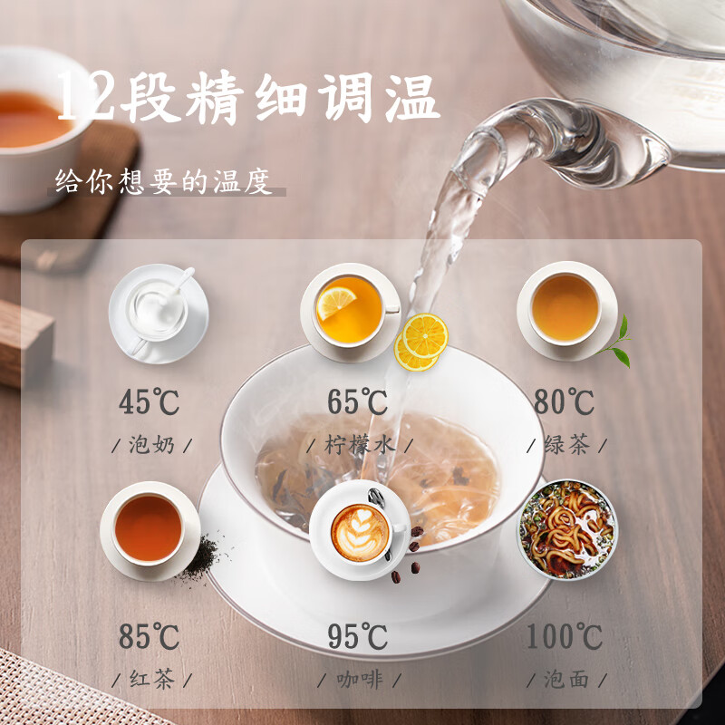 5、容量大小:挺好的,喝茶给孩子沏奶很方便。外观材质:买的黑色的,看起来比较有质感。烧水速度:烧水很快,一分钟就好了。