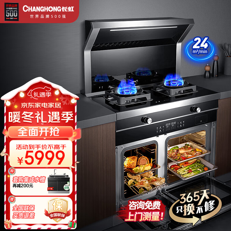 长虹集成灶蒸烤一体集成灶一体灶大吸力 独立蒸烤箱一体机蒸箱烤箱一体式 家用抽油烟机套装 A5K天然气价格:5999.00元!