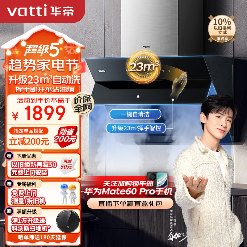 华帝(VATTI)抽油烟机 侧吸式 小尺寸 家用吸油烟机 23风量大吸力 智能挥手智控 高频自动清洗排油烟机 i11170价格:1899.00元!