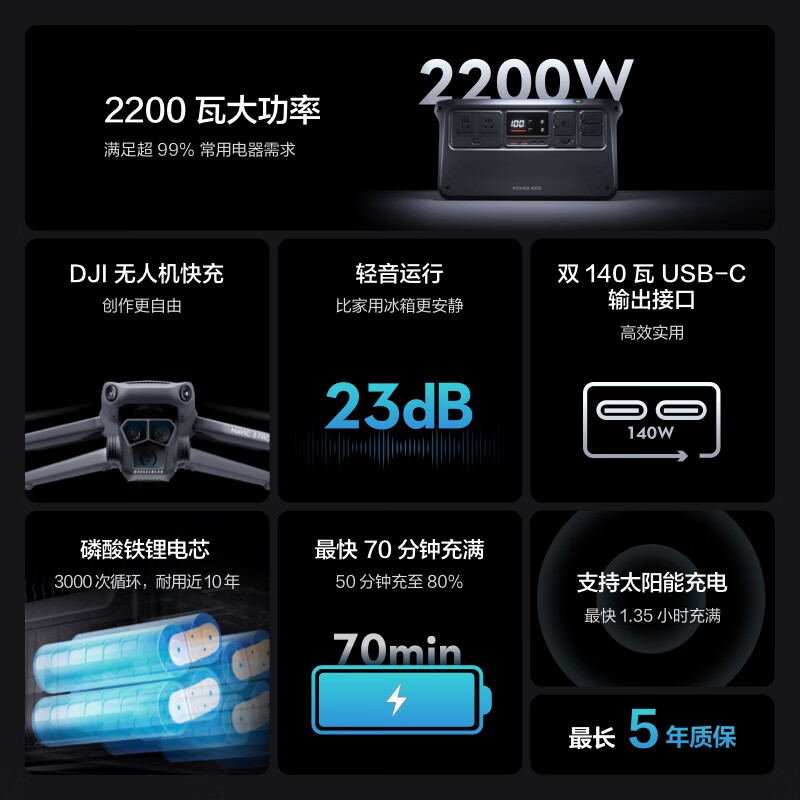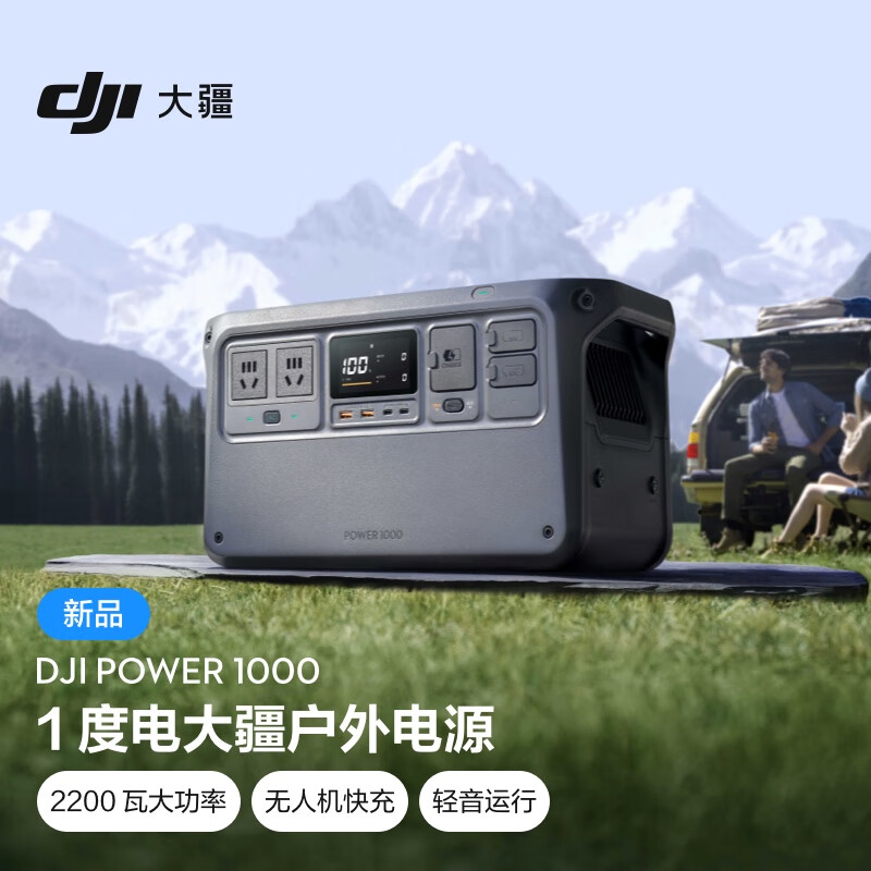 大疆 DJI Power 1000 户外电源 1度电220V 2200W大功率大容量 露营摆摊车载应急备用 便携移动储能太阳能充电价格:3499.00元!