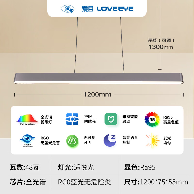 松下(Panasonic)护眼餐吊灯米家款餐厅长条线型48瓦吊灯 现代简约轻奢吊线灯具价格:1899.00元!