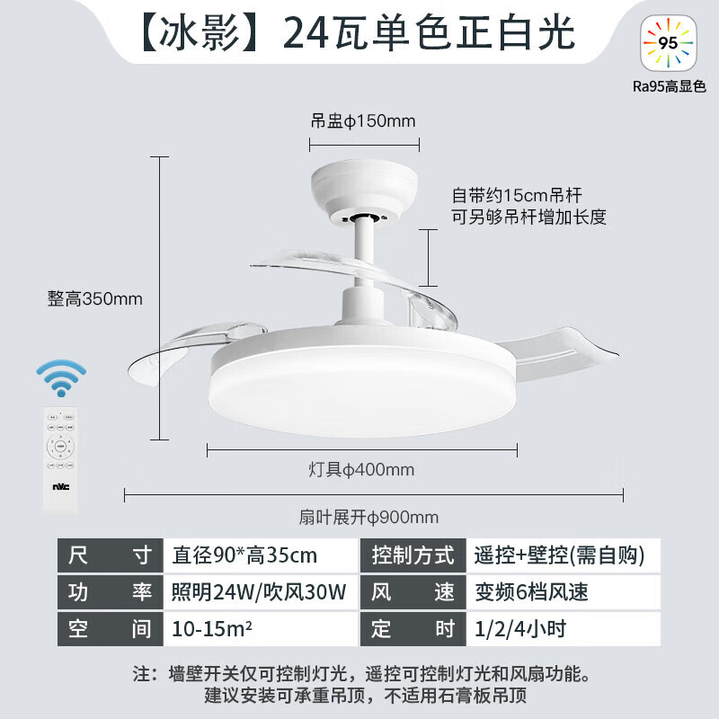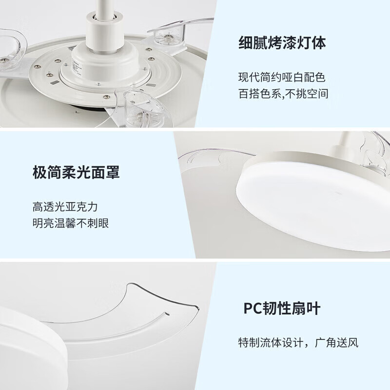 雷士(NVC)吊扇灯风扇灯隐形led餐厅白色卧室简约灯具现代灯饰高显指带遥控价格:499.00元!
