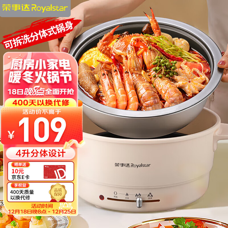 荣事达电火锅电炒锅电煮锅多功锅涮锅家用分体式焖锅电暖锅大容量大功率火锅可拆锅电热锅RHG-40QL价格:109.00元!