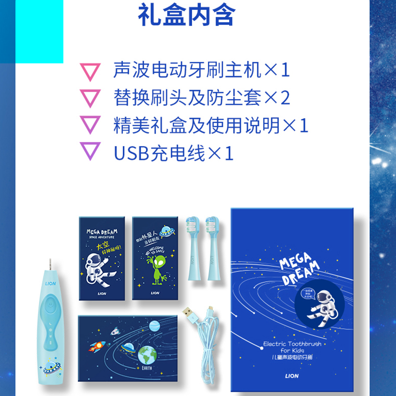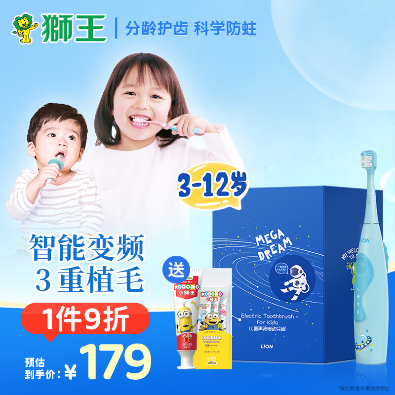 狮王(Lion)小狮王儿童电动牙刷 磁悬浮变频声波防水礼盒装蓝色(自带刷头*2)价格:198.80元!