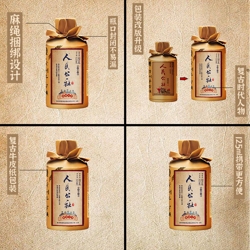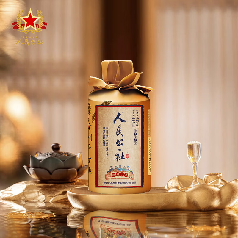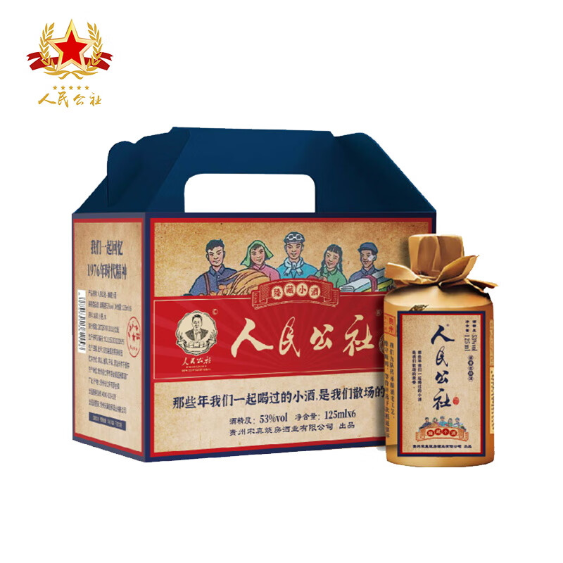 人民公社酒 贵州茅台镇53度酱香型白酒 升级版公社小酒 整箱 125ml*24瓶价格:469.00元!