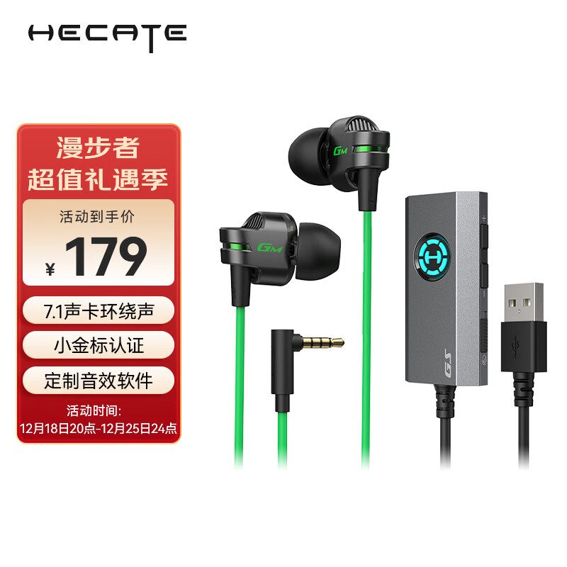 漫步者(EDIFIER)HECATE GM380声卡版 入耳式游戏耳机带麦 电竞吃鸡电脑手机直播耳麦 7.1声道外置声卡 绿色价格:199.00元!
