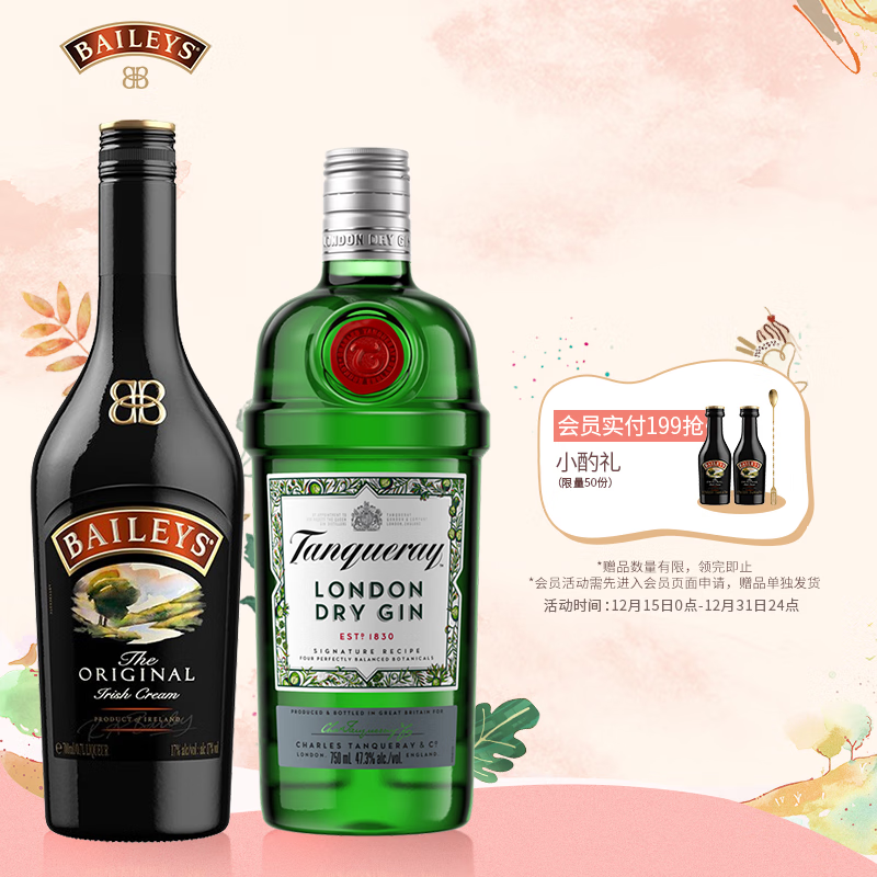 百利(Baileys)【节日送礼】甜酒 力娇酒 原味500ml+添加利伦敦干味金酒750ml价格:167.00元!