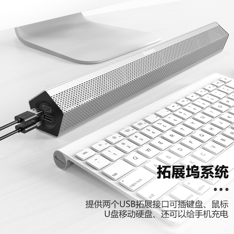 飞利浦(PHILIPS)SPA520S HIFI级电脑音响台式桌面有线蓝牙笔记本双USB拓展hub 铝合金游戏音箱价格:199.00元!