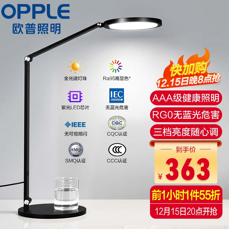 欧普(OPPLE)AAA级全光谱国AA级照度LED书桌护眼习宿舍卧室儿童写字台灯 元尊价格:615.20元!