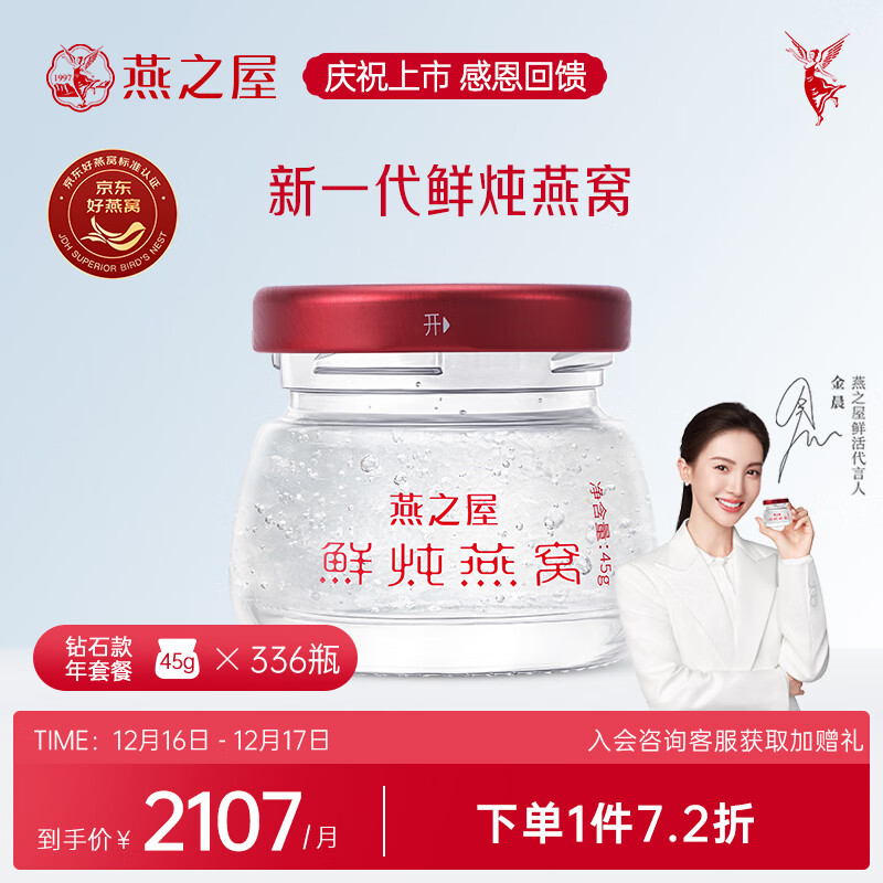 燕之屋鲜炖燕窝 钻石款45g*7瓶*48盒年套餐【每周发1盒-加冰袋配送】冰糖燕窝孕产妇滋补品营养品价格:44592.00元!