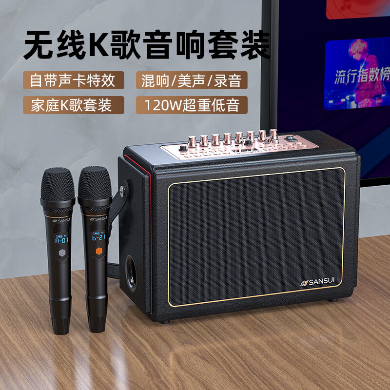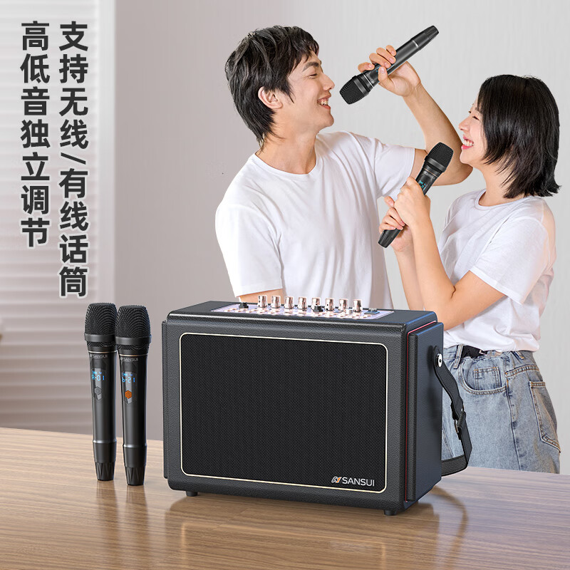 山水(SANSUI) E12家庭KTV音响套装k歌音箱设备手提便携式户外广场舞唱歌直播双麦版【黑色】价格:1598.00元!