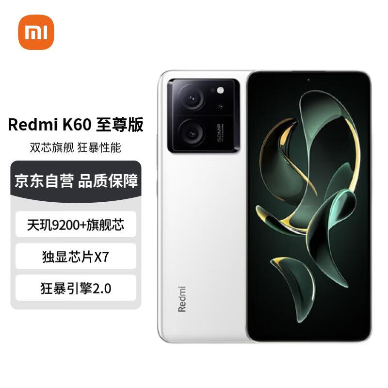 Redmi K60 版 天玑9200+ 独显芯片X7 1.5K直屏 索尼IMX800 光学防抖 16GB+512GB 晴雪 小米红米K60 Ultra价格:2929.00元!
