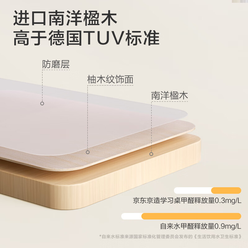 5、京东京造这款学习桌物美价廉,开始还担心有味道,实际很环保,安装完毕后一点味道都没有,做工精细,比商场卖的便宜好多,值得购买。
