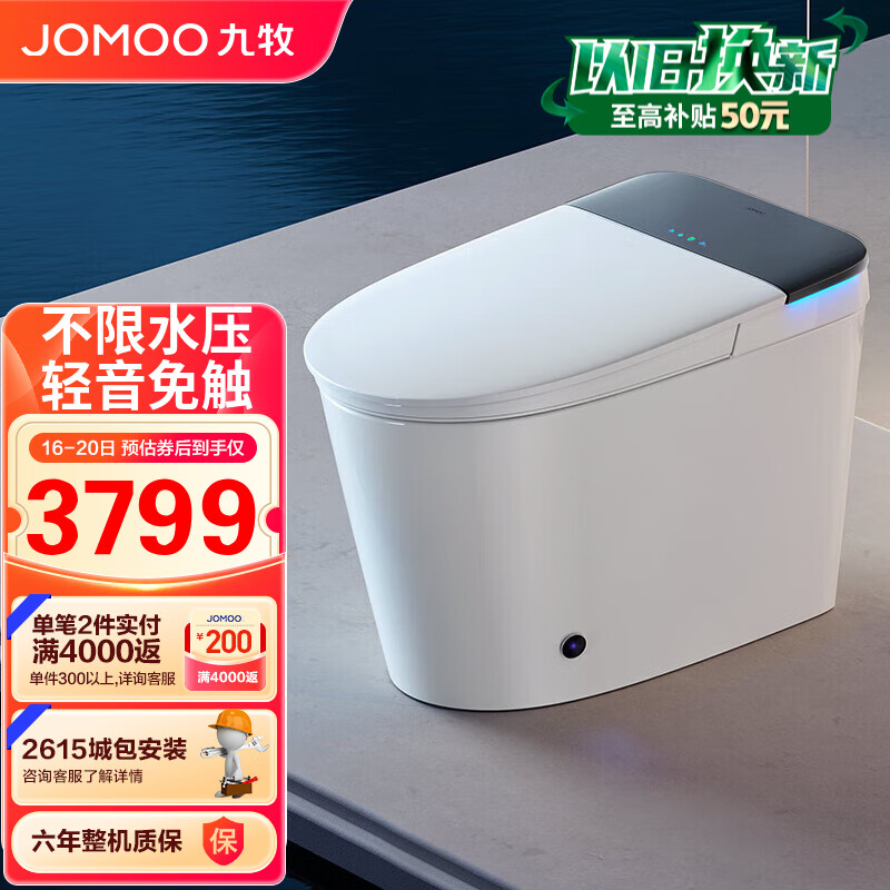 九牧(JOMOO)无水压限制智能马桶节水低音冲自动翻盖智能坐便器ZS700J 305坑距价格:5149.00元!